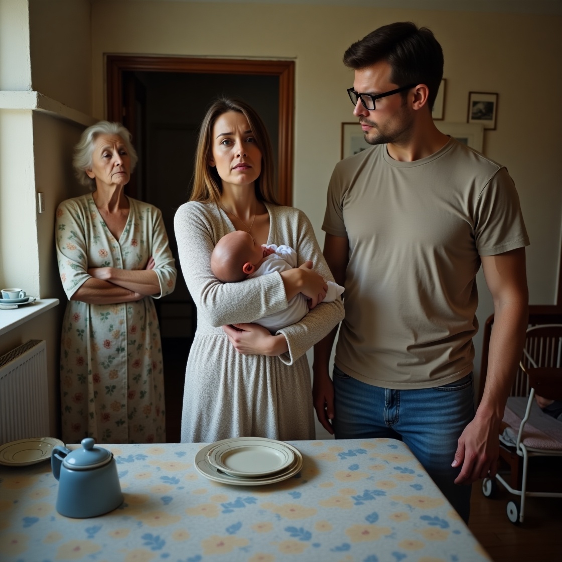 Я сидела, уставившись на пятно от котлеты. В кухне пахло жареным, луком и её духами — дешёвыми, с запахом сирени, от которых у меня всегда першило в горле. Лёшка, мой муж, молчал, ковырял свою порцию, будто ничего не слышал.
