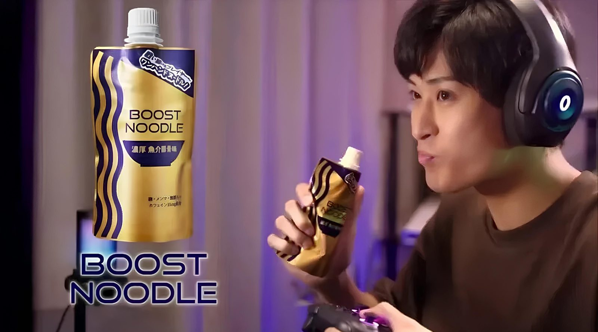 В магазинах Японии появилась новинка от компании Nippon Ham — лапша быстрого приготовления с кофеином, упакованная в удобный тюбик. Продукт получил название Boost Noodle. Главное отличие новинки — не нужно ждать несколько минут после того, как залить в неё кипяток. Она готова к употреблению сразу. Boost Noodle представляет собой бульон на основе морепродуктов и свинины с кусочками, лапшу из батата и ферментированные побеги бамбука. Также она содержит в себе 35 мг кофеина, что эквивалентно половине чашки эспрессо, что поможет поддержать бодрость во время игр. Продукт может храниться при комнатной температуре до 90 суток. Такая лапша придумана 20-летним сотрудником компании Boost Noodle, который сам увлекается видеоиграми. Её разработка заняла около 2 лет. Лапша позиционируется как удобная еда в любых ситуаций, когда одна рука занята. Цена новинки составляет 660 йен (примерно 375 рублей).