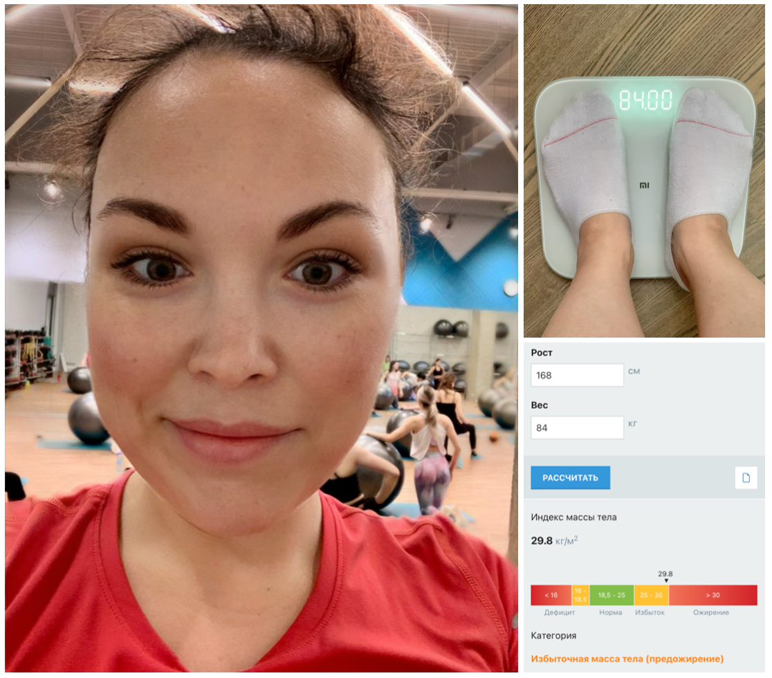 Чему тут радоваться?! А тому, что это новая ступень на шкале ИМТ. Я перешла из статуса «ожирение» в статус «избыточная масса тела». Лет 10 мой бегунок на этой шкале был в красной зоне. И сейчас, в свои 84 кг, я наконец перешла эту границу. Знаю, что скажут некоторые знатоки. Индекс массы тела – необъективный показатель. Если взять качка на 120 кг, состоящего насквозь из мышц, то его ИМТ будет говорить об ожирении. Эта метрика вообще не учитывает процентное соотношение жира и мышц. Всё правда! Так почему я так радуюсь? А потому что мне важно отмечать каждое микродостижение! Если не эти маленькие флажки на пути, то что? Я цепляюсь за все что может меня мотивировать. И этот параметр ещё как мотивирует! Он говорит о том, что я больше не в патологи, а просто в отклонении от нормы. Я расставляю эти флажки на всём маршруте, чтобы было радостно их срывать и идти дальше. Важно, что это не цели, а именно приятные достижения. И они не только в виде цифры на весах. Вот недавно влезла в куртку, кот