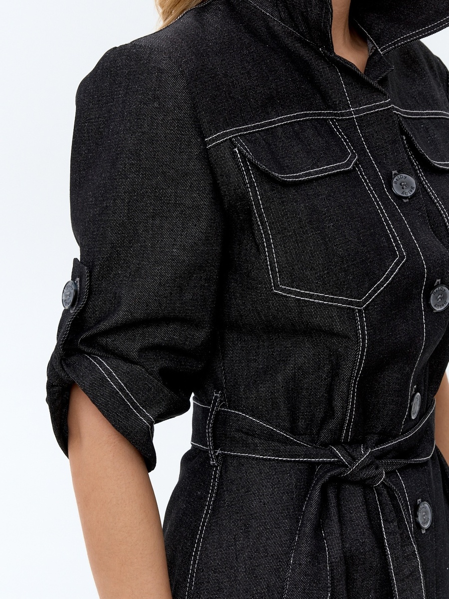 MARCA - российский бренд одежды Джинсовое платье миди. Застежка по переду на петли и пуговицы. Отделочная строчка контрастной нитью. Отрезная линия талии. Рукав ¾ прямой, длина регулируется патой. Воротник рубашечный. В боковых швах юбки карманы. В комплекте завязывающийся пояс. Состав - хлопок 97%, эластан-3%. Размерный ряд 42-46, большие размеры шьём на заказ 3-5 дней. Цена не меняется. Доставка по России CDEK, включена в стоимость. Арт.123-1 Заказ по WA +7(918)383-55-11