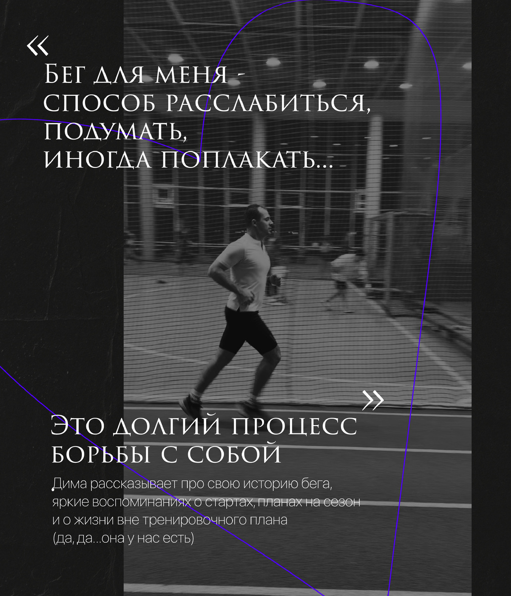 Поговорили со спортсменом клуба PROPACE о его беге, планах на свежий сезон, воспоминаниях о первых забегах и жизни вне тренировочного плана (Да, она у нас есть) Дима запланировал себе амбициозные страдания цели на эту весну. На аперитив - Московский полумарафон 27 апреля. Следом за ним, спустя неделю, основное блюдо - марафон в Казани. Начало он заложил многообещающее, но решил не останавливаться и шлефануть 10кой в Питере в начале июня. И на самое сладкое - Московский марафон. Планов много, но позволим ему плыть по беговому течению. Оно бывает непредсказуемо. К тому же, мы знаем как красиво и незаметно наш тренер направляет эту реку в нужное русло 🫶 На старты Дима выходит уже третий сезон и хочется верить, что знает, что делает. - Какая была твоя первая дистанция? - Питер. 10ка на Белых ночах. Перед стартом испытал волнение и гордость, что это мой первый и официальный забег. Были слезы и тряслись руки вовремя отсчета старта моего кластера. Когда выбежал из толпы, вокруг настала н