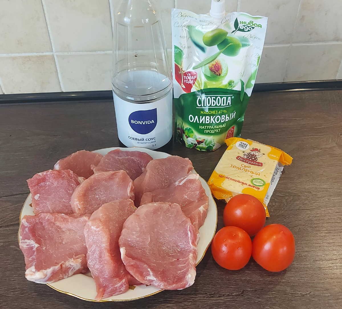Отбивные из свинины, запеченные в духовке, – это сочное и ароматное блюдо, которое легко приготовить и которое прекрасно подходит как для повседневного, так и для праздничного стола. Отбивные – это тонкие кусочки свиной вырезки или корейки, которые предварительно отбиваются для придания им нежности и равномерного пропекания. Затем их маринуют или просто приправляют специями, после чего запекают в духовке. Запекание позволяет получить сочные отбивные с румяной корочкой, при этом сохраняя внутри мягкость и сочность мяса. Для придания отбивным большей сочности и вкуса их можно запекать с овощами (картофелем, луком, морковью), грибами, сыром. Рецепт Свинина - 1 кг Майонез- 2 ст.л Соевый соус - 2 ст.л Приправа - 1 ч.л Соль Сыр твёрдый - 100 г Помидоры- 2-3 шт 1. Готовим маринад. Смешиваем майонез соевый соус и приправу. 2. Мясо нарезаем порционными кусочками, 2. Отбивает его молотком с двух сторон. 3. Выкладываем мясо в маринад и отправляем в холодильник на 1-2 часа. 4. На тё