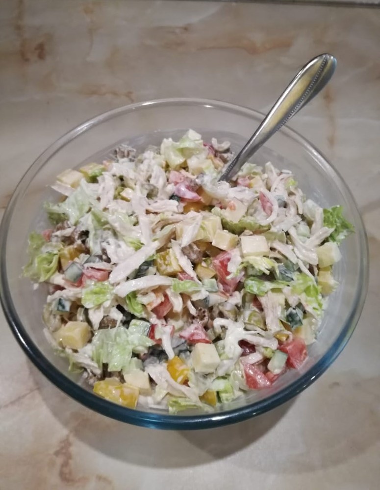 Однажды знакомый Адвокат, известный своей страстью к праву и..., скажем прямо, к еде, решил своих друзей познакомить на обеде с новым делом - салатом «Королевская вкусняшка». Звучит интригующе. На суд гостей был подан настоящий «салат-спор» между стариком «Цезарем», изысканным и модным, и Овощным, простым и неприметным. Внимание! Разрешая этот спор, Адвокат использовал беспроигрышные «аргументы» каждого ингредиента, дополняя их новыми, только что обнаруженными «доказательствами». Первым делом он взял свежие листья салата. С этим всё ясно: они обеспечивали «базу» — основу для любого убедительного аргумента. Салат можно порезать или порвать на мелкие кусочки. Затем пошли помидоры – сочные и яркие. «Это же очевидный выбор! Они добавляют страсть и яркость жизни!» — с уверенностью произнес Адвокат, как будто защищая свою точку зрения в суде. Потом пришёл черед зелёных огурцов и жёлтого болгарского перца, которые, по его мнению, были символом «чистоты» . «В них нет ничего лишнего, как