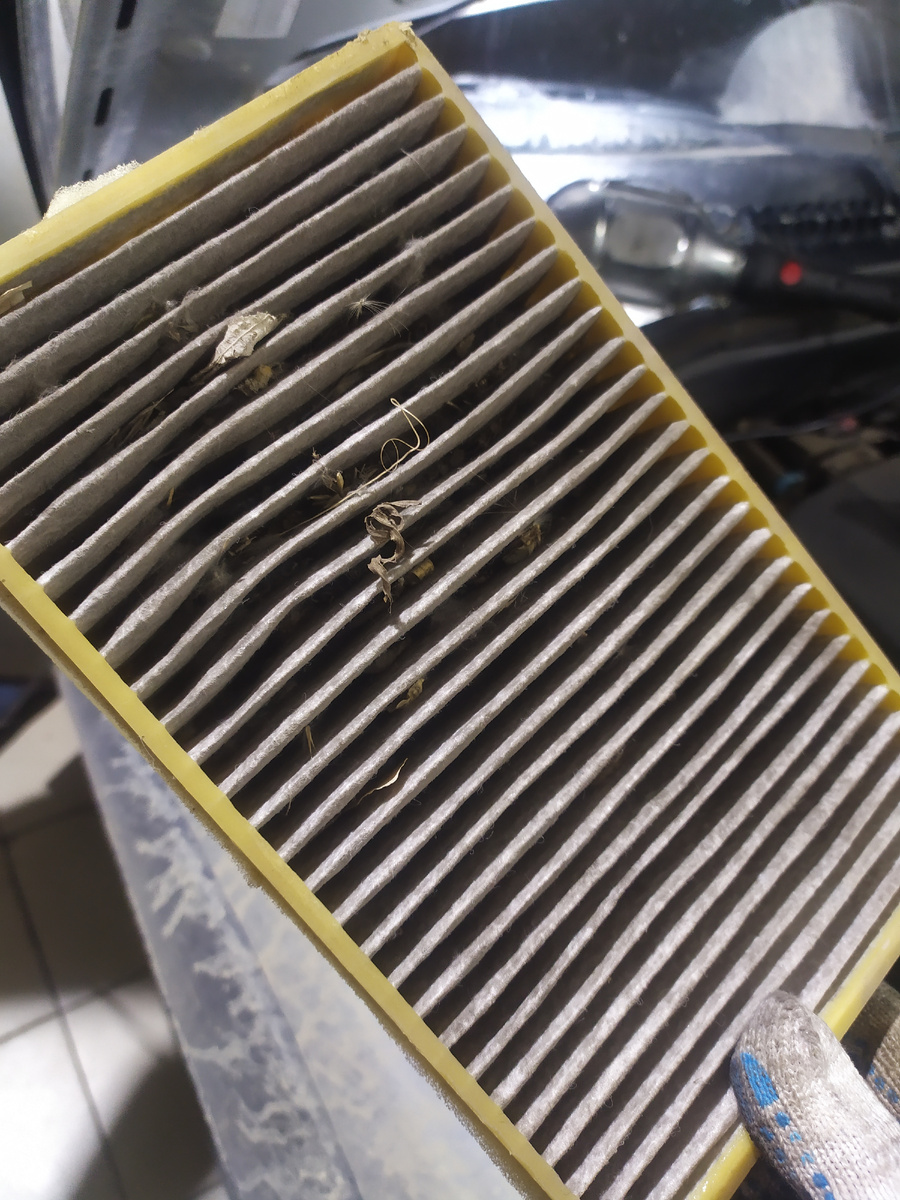 Иногда автомобилисты забывают менять фильтр салона, а некоторые даже и не знают о присутствии такого фильтра в автомобиле. Именно так и было с нашим клиентом - первая иномарка, пересел с АвтоВАЗа, где таких фильтров не было и спустя несколько тысяч км пробега приехал с такой проблемой - мотор печки гудит, но дует очень слабо, к тому же запотевает стекла и ездит крайне не комфортно. В итоге демонтировав данный фильтр обнаружили, что он наглухо забит грязью (листва, мусор) и пылью, а значит практически не пропускал через себя воздух. В таком случае на моторчик печки идёт повышенная нагрузка, повезло что не сгорел. Фильтр заменили, моторчик разобрали, провели тех обслуживание и установили все на место. Цена фильтра всего 350 рублей, не такие уж большие деньги, чтобы экономить на нем. В идеале желательно производить замену фильтра салона хотя бы два раза в год или по необходимости .