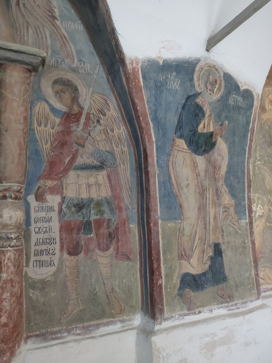 Вообще тут уникальная микросреда. Храм не отапливался никогда - только отдельные его приделы. А это уже к северам ближе местность. И даже когда мы были - температура воздуха за минус 10 была. Летом прям жары нет - камни держат прохладу, но всё равно она выше, чем на момент нашего посещения. Но все старинные иконы "привыкли". И если их забирают на реставрацию, то после уже сюда не возвращают. Они переселяются в отапливаемый придел, где уже следят за температурой, необходимой в музейном хранилище. Возвращать обратно в храм нельзя - отреставрированным иконам тут уже плохо становится.