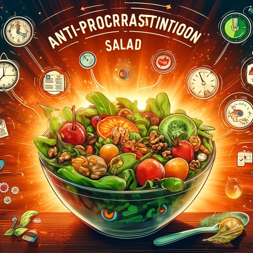 Характеристика блюда: освежающий и лёгкий салат, идеально подходящий для ежедневного рациона тех, кто устал откладывать дела на потом. Правильно приготовленный, он даёт заряд бодрости и ясности ума, помогая вам легко справляться с любыми задачами. Салат «Антипрокрастинация» — настоящее спасение для тех, кто регулярно откладывает важные дела на потом. Если прокрастинация стала вашим постоянным спутником, этот салат поможет заменить её на продуктивность и ясность действий. Его ингредиенты подобраны так, чтобы вдохновить вас действовать прямо сейчас, без ожидания идеального момента, который может так и не наступить. 🥗 400 г ясных и реалистичных целей