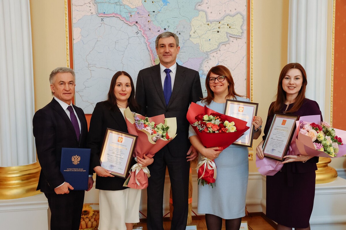 Награжденным передали благодарности и благодарственное письмо. Четверо жителей Приамурья отмечены наградами президента России. Их вручил глава региона Василий Орлов. Благодарности главы государства удостоились руководитель исполкома регионального отделения Народного фронта Светлана Тюкалова, специалист по проектной деятельности регионального отделения движения детей и молодежи «Движение первых» Тамара Заболоцкая и главный редактор газеты «Амурская правда» Елена Павлова. Благодарственное письмо получил заместитель председателя правительства Амурской области Павел Матюхин. Он курирует сферы строительства, ЖКХ, транспорта и дорожного хозяйства. «Ваш профессионализм отмечен на самом высоком уровне. Спасибо за работу», - обратился к награжденным глава Приамурья. Информация и фото правительства Амурской области Читать на сайте ТЕЛЕПОРТ.РФ Еще больше новостей в нашем телеграм-канале https://t.me/amurobl