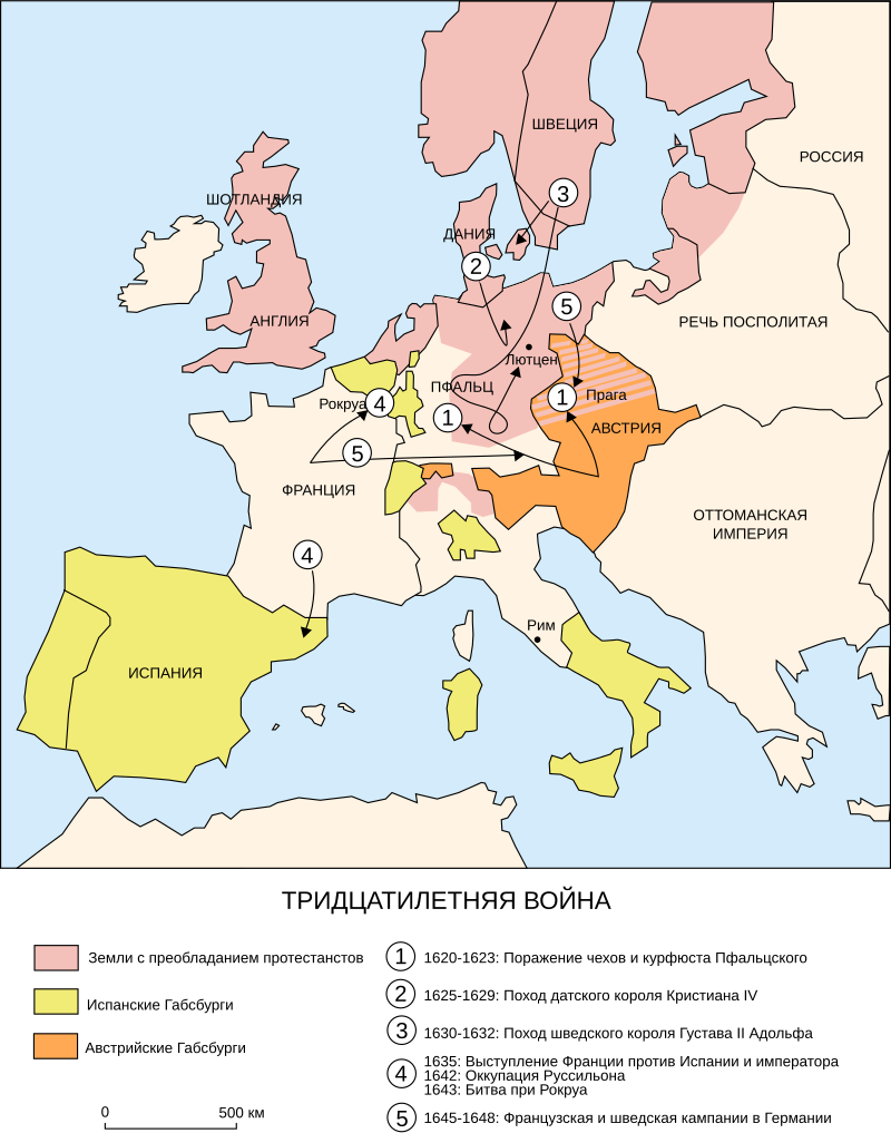 Тридцатилетняя война (1618-1648) - один из первых общеевропейских военных конфликтов, затронувший в той или иной степени практически все европейские страны (в том числе и Россию), за исключением Швейцарии и Турции. Война началась как религиозное столкновение между протестантами и католиками Германии, но затем переросла в борьбу против гегемонии Габсбургов в Европе.