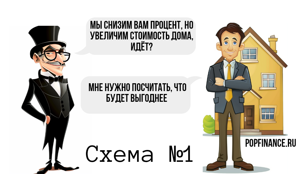 Застройщики договаривались с банками о «специальных» условиях: клиент получал ипотеку с пониженной ставкой (например, 8% вместо 12%), но цена квартиры искусственно завышалась. Например, реальная стоимость жилья — 5 млн рублей, но в договоре указывали 6 млн. Разницу в 1 млн застройщик перечислял банку как компенсацию за низкий процент. В итоге: