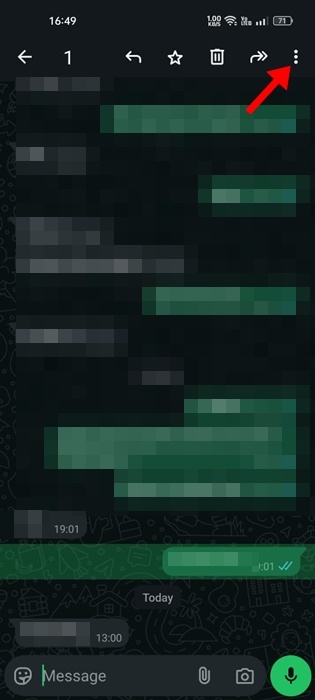2. Когда приложение WhatsApp откроется, откройте чат и выберите сообщение, время прочтения которого вы хотите проверить.