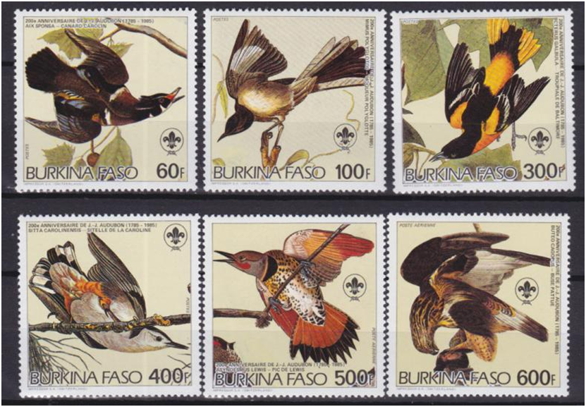 В 1985 г. мировое сообщество праздновало 200-летие рождения американского натуралиста-орнитолога и художника Одюбона. Это выражалось в издании многими странами мира серий марок с изображениями птиц, им созданных. Я в детстве эти яркие марки (в основном, африканские) с птицами покупал, когда мог (это происходило в Москве, когда меня туда привозила тетя), не зная, кем был этот художник. В этом году исполняется 240 лет со дня рождения Одюбона. За этим именем скрывается любопытная история. Одюбона в США знают все [лица с высшим образованием], это национальный гений. Первоиздание книги «Птицы Америки» Одюбона стоит $11,5 млн.