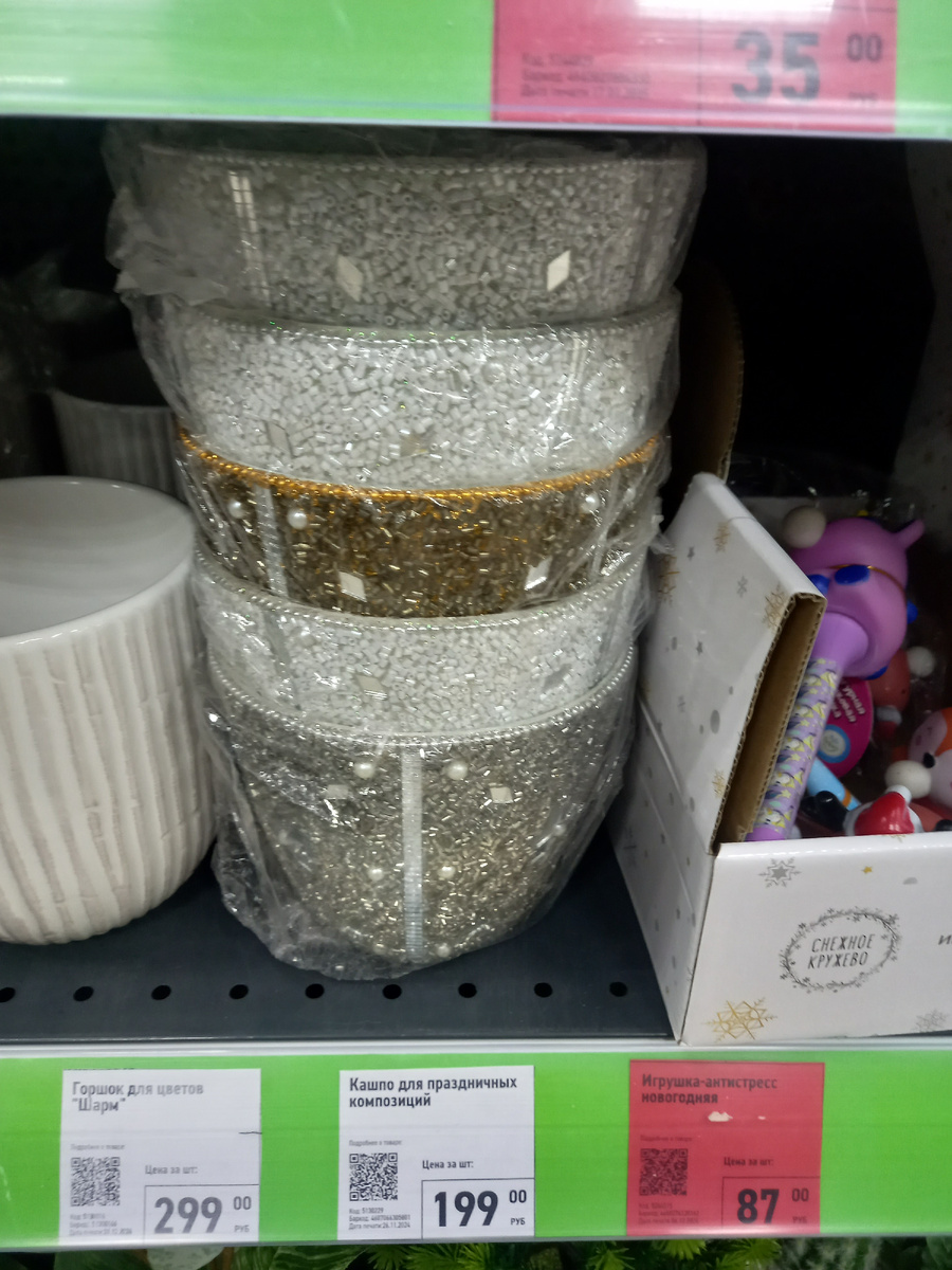 Здравствуйте дорогие! Покажу, что интересного увидела в продаже сегодня. Симпатичное кашпо. Представляю как будет переливаться на солнышке) Игрушек полно Раньше частенько покупала сыну игрушки здесь. Когда было время , что все игрушки проверялись им на прочность🤭 Тут хоть можно недорогих накупить и не так жалко , если сломаются. Снова камины появились. Робот-дельфин Недорогие шкатулки Сумочек, кошельков и косметичек прибавилось Очень приятный флакор с распылителем. Зерколо и подставка для украшений Настенная полка для книг. Цвета в ассортименте. Здоровая игрушечная гусеница Шашки на летний период классная игра. Можно играть и с детьми и во взрослой компании и в поездке на поезде . Да где и с кем угодно😀 Посуда Скатерти 135/110 см. Набор точилок Коврики для мыши. Знаю , что берут такие еще для кукольных румбоксов. Те самые полочки с Пасхальной продукцией. Набор для раскрашивания. С машинкой , кисточкой и красками. Немного Аврор. До следущих обзоров! Всем пока,