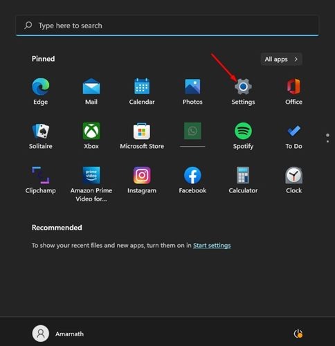 1. Сначала нажмите кнопку «Пуск» в Windows 11 и выберите «Параметры» .