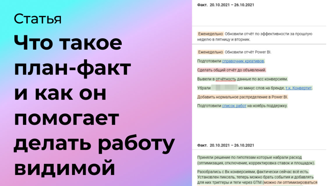 В статье расскажу, что такое план-факт проекта, как он помогает делать вашу работу видимой для начальства и клиентов.
