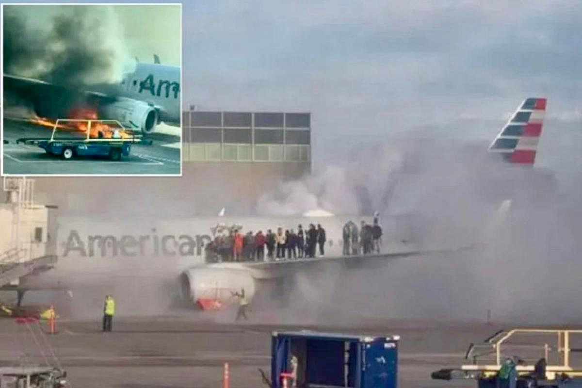 Самолет American Airlines загорелся после посадки в США – пассажиры эвакуировались через крыло Самолет