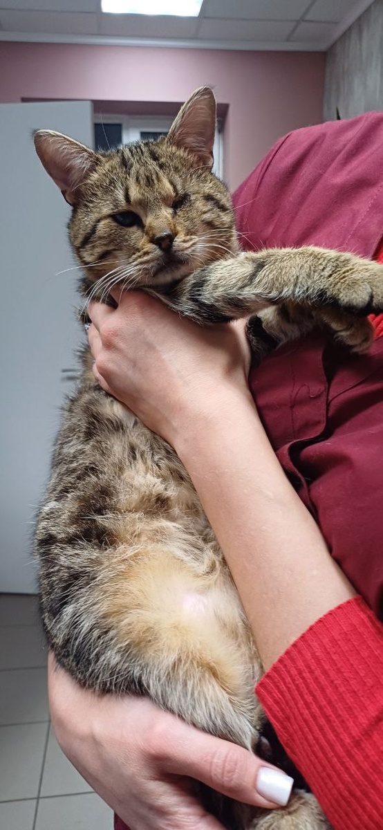 Мой однозначный фаворит в "Велесе" это неприметный с виду, шпротный парень с теплым именем Бурундучок и коротким озорным хвостиком, всегда поднятым залихватски вверх, только что шляпы мушкетёра не хватает. Каждый приезд, малышок так искренне, всей кошачьей сущностью, тянется к тебе, что из глаз текут соленые слезы умиления. Он родился в горячие дни, когда в Северодонецке шли ожесточённые бои, в июне 22 года.. В недельном возрасте девять котят остались сиротками, и Ирина Суровая с приёмной кошкомамой Лоркой стали дружно выхаживать младенцев. Зверь и Человек бились изо всех сил за детей, как достать смесь "Малютку" на фронте не знаю, что-то фантастическое, но Ира смогла, как, где, откуда, история умалчивает, но благодаря этому скромному подвигу у пушистиков всегда была еда, и представьте себе, каково кормить шесть раз в сутки кричащее, открывающее ротики "стадо", когда за окном грохотала с оглушительной силой, отнюдь не июньская гроза. Однако из 9 котят выжил только Бурундук. За год п
