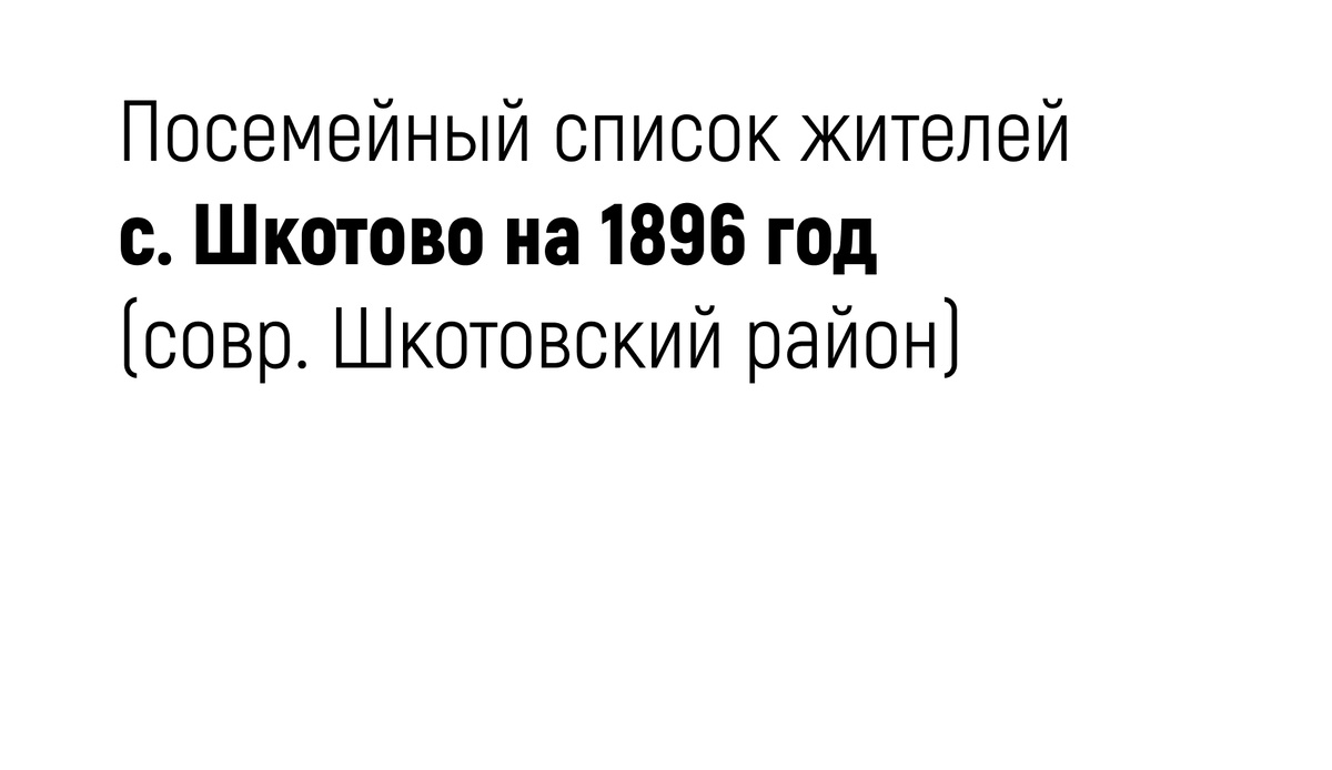 Ниже привожу посемейный список жителей с. Шкотово на 1893 год (современный Шкотовский район) с указанием ФИО главы семьи и его возраста.
