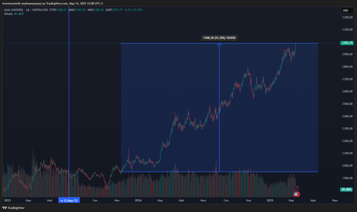 В ноябре 2023 года, в ответ на бюджетные стимулы со стороны США, мы провели реорганизацию портфелей и добавили в них 20% золота. Об этом сильном изменении я писал в первых лонгридах на «Спонсор». Справедливости ради, писал об этом и на канале: https://t.me/investacademy/1747. Я тогда не подозревал, что с того момента оно сделает плюс 50%. Теперь же на повестке дня стоит ряд важных вопросов: