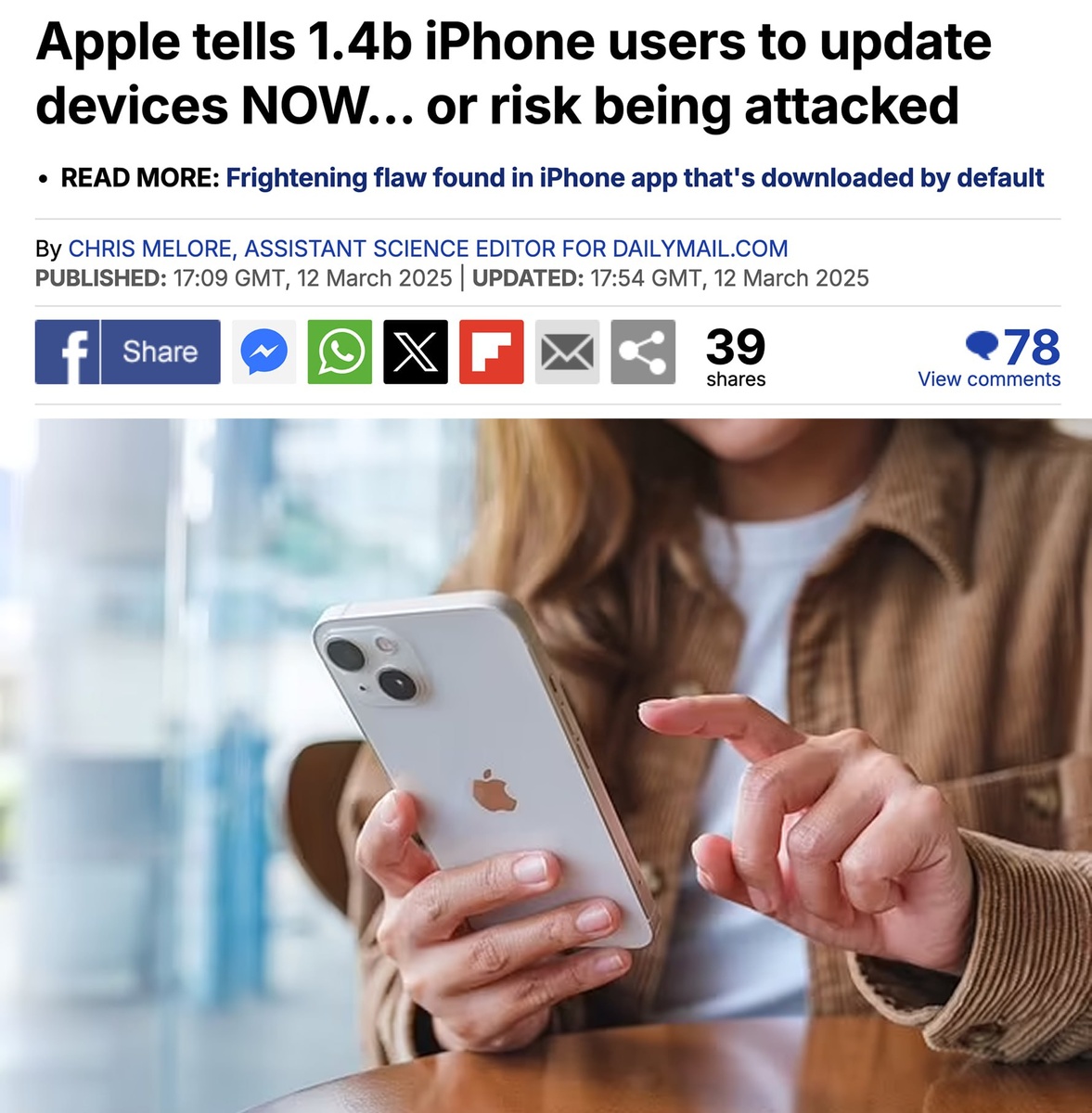 В смартфонах 1,4 млрд пользователей нашли критическую уязвимость. Дыру выявили в браузере Safari. Решает проблему обновление до версии 18.3.2. В зоне риска — все модели от iPhone XS и новее