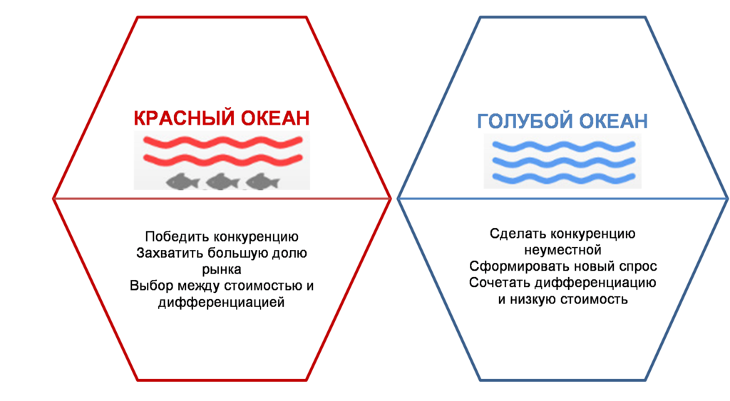 Впервые термин «голубой океан» встретился мне в книге Чана Кима и Рене Моборн «Стратегия голубого океана». Он уже вскользь упоминался в одной из предыдущих частей книги — настало время остановиться на нем подробнее. При создании нового продукта или построении организации надо принять важное решение — выбрать стратегию развития предприятия. Возможно, кто-то считает, что у его организации нет стратегии. Это верно лишь отчасти. Можно сказать, что даже если нет «прописанной» стратегии, то какая-то стратегия, несомненно, есть. Потому что стратегия Различают три уровня стратегии. Самый верхний — это выбор отрасли: что именно мы производим.