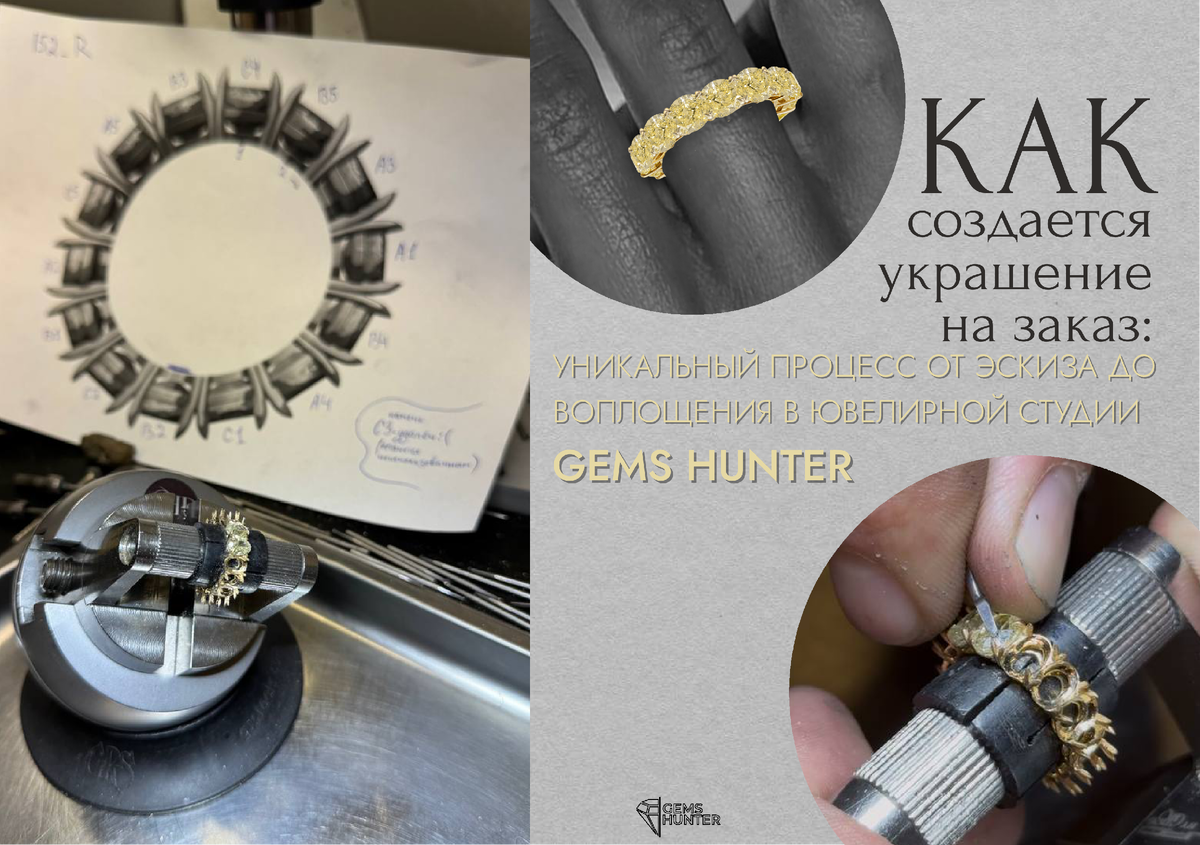 Создание украшения на заказ в ювелирной студии Gems Hunter — это возможность воплотить свои мечты в реальность. От разработки индивидуального эскиза до подбора сертифицированных драгоценных камней и изготовления изделия — каждый этап проходит с максимальным вниманием к деталям. Если вы ищете уникальное украшение, которое будет отражать вашу индивидуальность, доверьтесь профессионалам Gems Hunter. Здесь ваши идеи превратятся в настоящие произведения искусства.