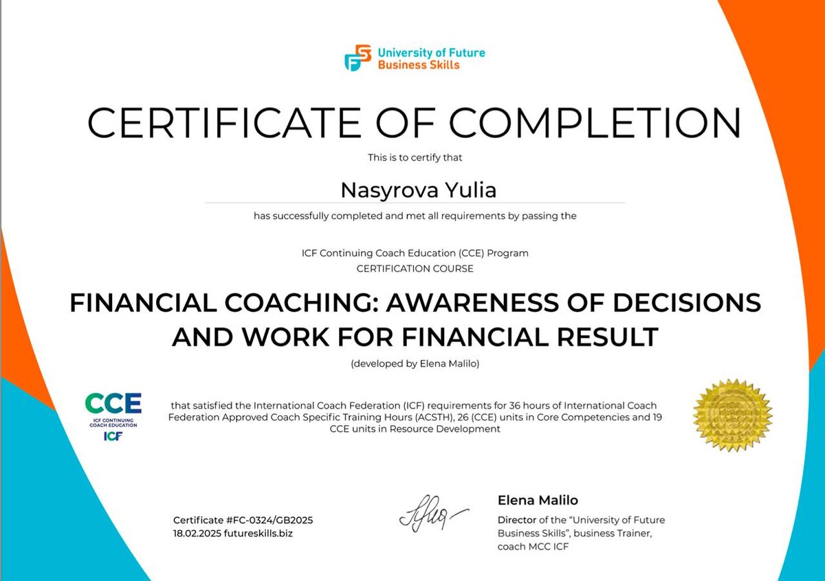 Эта сфера, где у меня отличная репутация и авторитетное мнение. Ко мне обращаются за консалтингом, берут интервью, приглашают на мероприятия для HR. Поэтому, несмотря на новые знания и навыки в финансовом коучинге, я продолжаю оставаться в своей любимой специализации. Ведь, согласитесь, деньги и карьера – нер