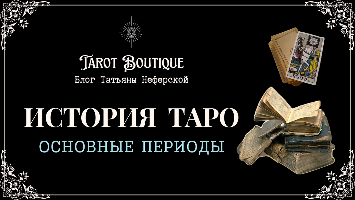Основываясь на этой краткой классификации периодов, мы можем наглядно увидеть как в Таро интегрировались те или иные оккультные доктрины, когда в Таро внедрилась психология и юнгианство и проч., и как все это повлияло на развитие тарологической мысли.