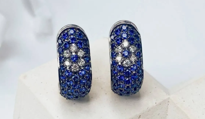 Серьги для создания вау-эффекта. Они яркие, заметные и впечатляют своей красотой. В дизайне украшений на первый взгляд нет ничего особенного, простые объемные дуги с плавными линиями. Вся роскошь и шик сосредоточены в нереально красивых драгоценных камнях: ярко-синих сапфирах, бриллиантах и рубинах. Вставки прекрасно дополняют друг друга, помогая раскрыться.