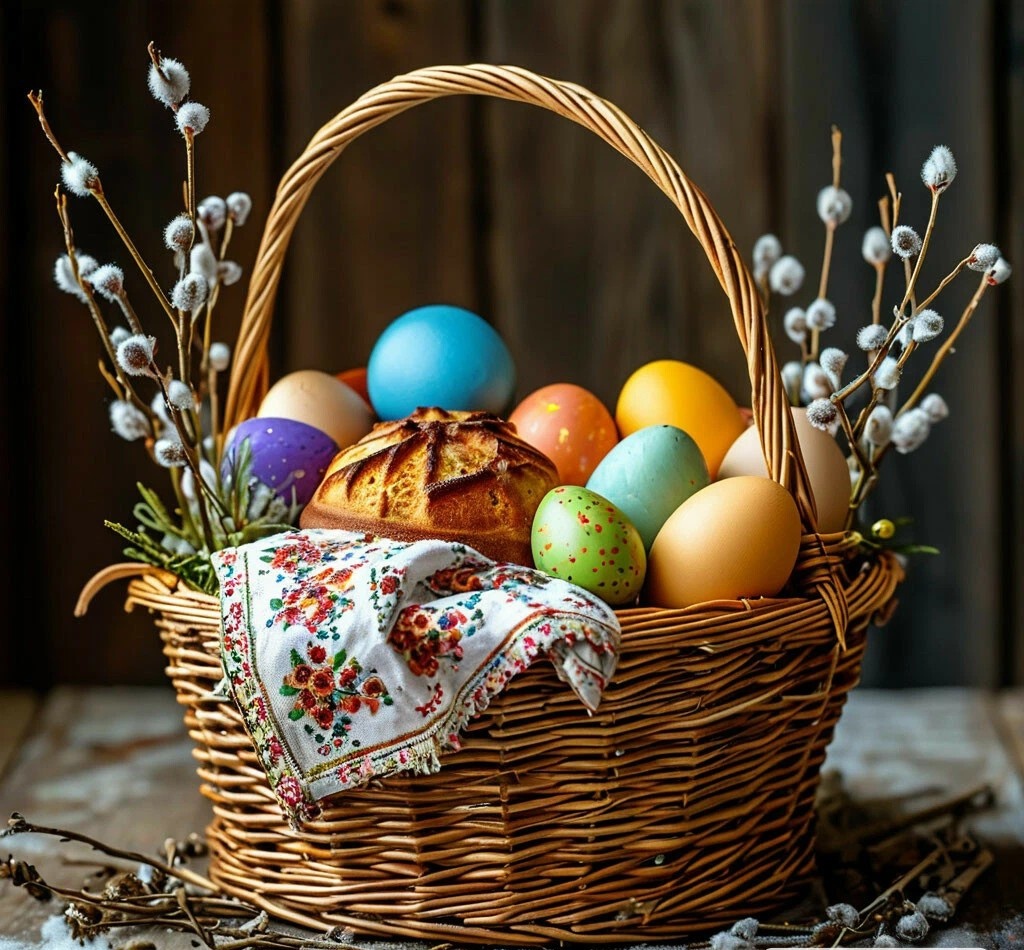 Пасхальная корзина – это не просто набор продуктов, а символ праздника Воскресения Христова. Она символизирует изобилие, радость и духовное возрождение. Какие же продукты традиционно включают в пасхальную корзину и как правильно её украсить? Куличи – главный элемент любой пасхальной корзины. Это сдобные хлеба, которые пекут специально к празднику. Они символизируют воскресение Христа и его победу над смертью. Кулич должен быть пышным, сладким и ароматным. Крашеные яйца – обязательный атрибут Пасхи. Яйцо символизирует новую жизнь, обновление и возрождение. Красят их обычно в красный цвет, который ассоциируется с кровью Иисуса Христа. Также можно использовать другие цвета, чтобы сделать корзину ярче и праздничнее. Церковные свечи. Их принято зажигать во время службы, а также в процессе освящения содержимого праздничной пасхальной корзины Творожная пасха (сыр, масло) – символы богатства и плодородия. Сыр часто добавляют в корзину в виде сырной бабки или других блюд, приготовленны