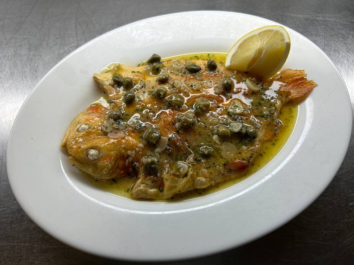 Выложите рыбу на тарелку, полейте сверху горячим соусом. Добавьте дольку лимона и поджаренные гренки из багета. 🔥 Приятного аппетита! 🔹 Для рыбы: