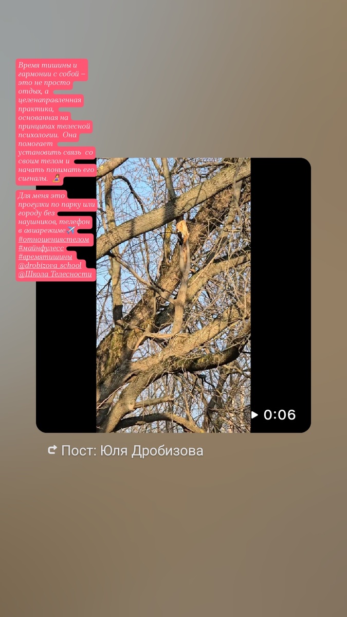 Время тишины и гармонии с собой – это не просто отдых, а целенаправленная практика, основанная на принципах телесной психологии. Она помогает установить связь со своим телом и начать понимать его сигналы. 🧘♀️ Для меня это прогулки по парку или городу без наушников, телефон в авиарежиме✈️ Созерцание и внимание к себе, Наблюдение за ощущениями в процессе движения, акценты на природу: 🐦⬛️Пение птиц 💨Ветер, в деревьях 🏞Наблюдение за волнами на пруду 🌞"Как это влияет на мои эмоции и состояния"; 🧘♀️"Что я чувствую?" 🧐"Какими мыслями наполняюсь, при движении и наблюдением за собой?" Практический опыт: 🔖Манфулесс (или "mindfulness") — это практика осознанности, которая помогает нам быть более внимательными к своим ощущениям, эмоциям и окружающему миру. 🌍 В контексте телесно-ориентированной психологии манфулесс помогает лучше понимать связь между телом и умом. 💖 ▎Что такое телесно-ориентированная психология? 🤔 Телесно-ориентированная психология фокусируется на том, как на