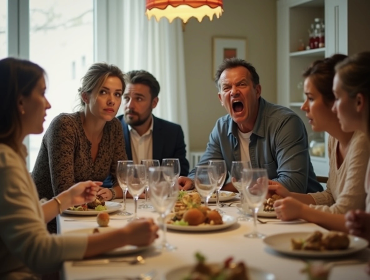 Я сидела, вцепившись в край стола, и чувствовала, как воздух в кухне становится тяжелым, как перед грозой. Гости начали выглядывать из комнаты — тетя Валя с круглыми от любопытства глазами, дядя Петя с бокалом в руке, застывший, как статуя.