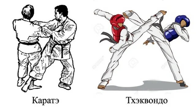 Каратэ бьёт на пробивную силу: удар цуки в солнечное сплетение или маваши-гери в рёбра способны вывести из строя. Тхэквондо же выигрывает за счёт скорости и количества атак. Тхэквондист может нанести 3–4 удара ногами за то время, пока каратист готовит один мощный выпад. Но если каратист выдержит первый шквал, его контратака будет опаснее.