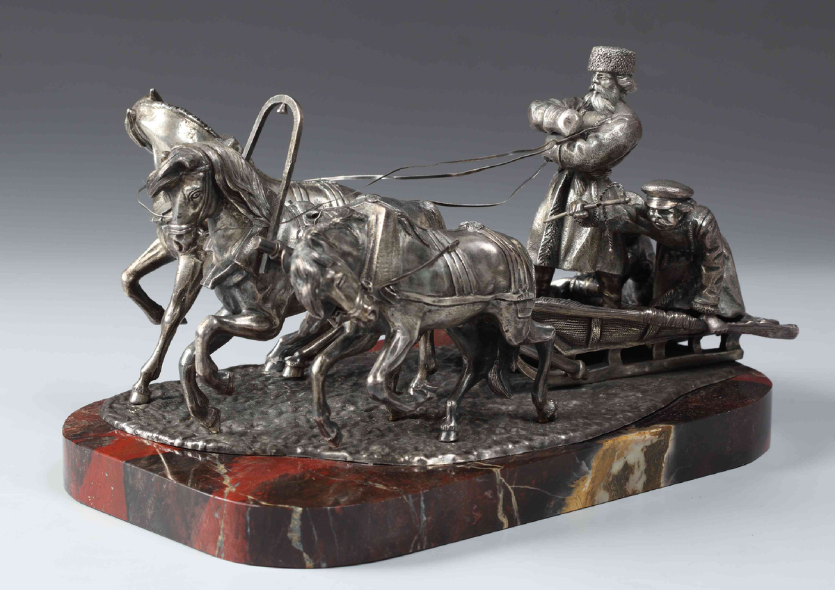 Основанная в 1871 году московская ювелирная фабрика Ивана Хлебникова была известна широким стилевым диапазоном, но особенно выделялся её вклад в неорусский стиль. На выставке 1873 года в Вене Хлебников представил серебряные изделия, вдохновлённые древнерусскими мотивами. Среди его работ – массивные чаши, декоративные пластины с изображениями исторических сцен и церковная утварь, включая золочёный эмалевый иконостас для Благовещенского собора Кремля.