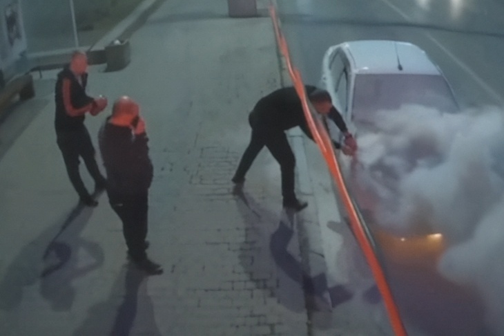 Судя по опубликованным кадрам, смельчаки опустошили сразу несколько огнетушителей, но огонь всё сильнее распространялся, начиная вырываться наружу даже в нижней части машины.