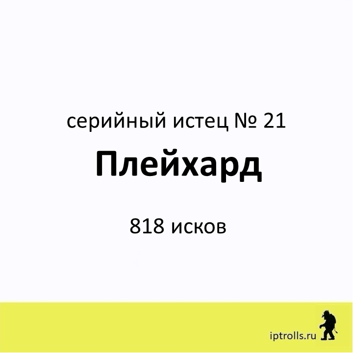Мы собрали информацию о правообладателях, массово подающих претензии и иски в защиту авторских прав и прав на товарные знаки, а также полезные материалы и рекомендации, чтобы вы могли: Сейчас в базе более 60 серийных истцов. Вы можете проверить, не нарушаете ли вы чьи-то интеллектуальные права в рамках своего бизнеса или проекта, получить ответы на популярные вопросы и проконсультироваться. Правообладатель Плейхард внесен в базу IPTrolls под № 21. Переходи в карточку правообладателя на сайте IPTrolls, чтобы узнать больше. Если вы не нашли ответ на свой вопрос, посмотрите другие материалы проекта или напишите нам через форму на сайте. _____________________ команда проекта IPTrolls 🕵🏻♂️Следите за обновлением базы