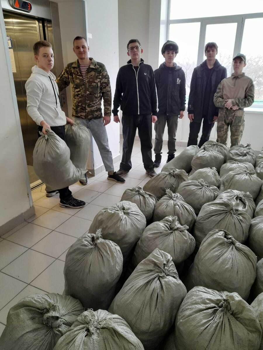В центр сбора гуманитарной помощи ВПО «Отечество» воспитанники этого объединения под руководством педагога-организатора Дмитрия Михайловича Чернышева доставили из ТЦ «Аструм» 100 мешков маскировочных сетей общей площадью 1800 квадратных метров. Всего на этот момент было готово 250 мешков масксетей. Также для бойцов изготавливаются плащ-палатки, собран груз для госпиталя. В центр сбора гуманитарной помощи ВПО «Отечество» воспитанники этого объединения под руководством педагога-организатора Дмитрия Михайловича Чернышева доставили из ТЦ «Аструм» 100 мешков маскировочных сетей общей площадью 1800 квадратных метров. Всего на этот момент было готово 250 мешков масксетей. Также для бойцов изготавливаются плащ-палатки, собран груз для госпиталя.