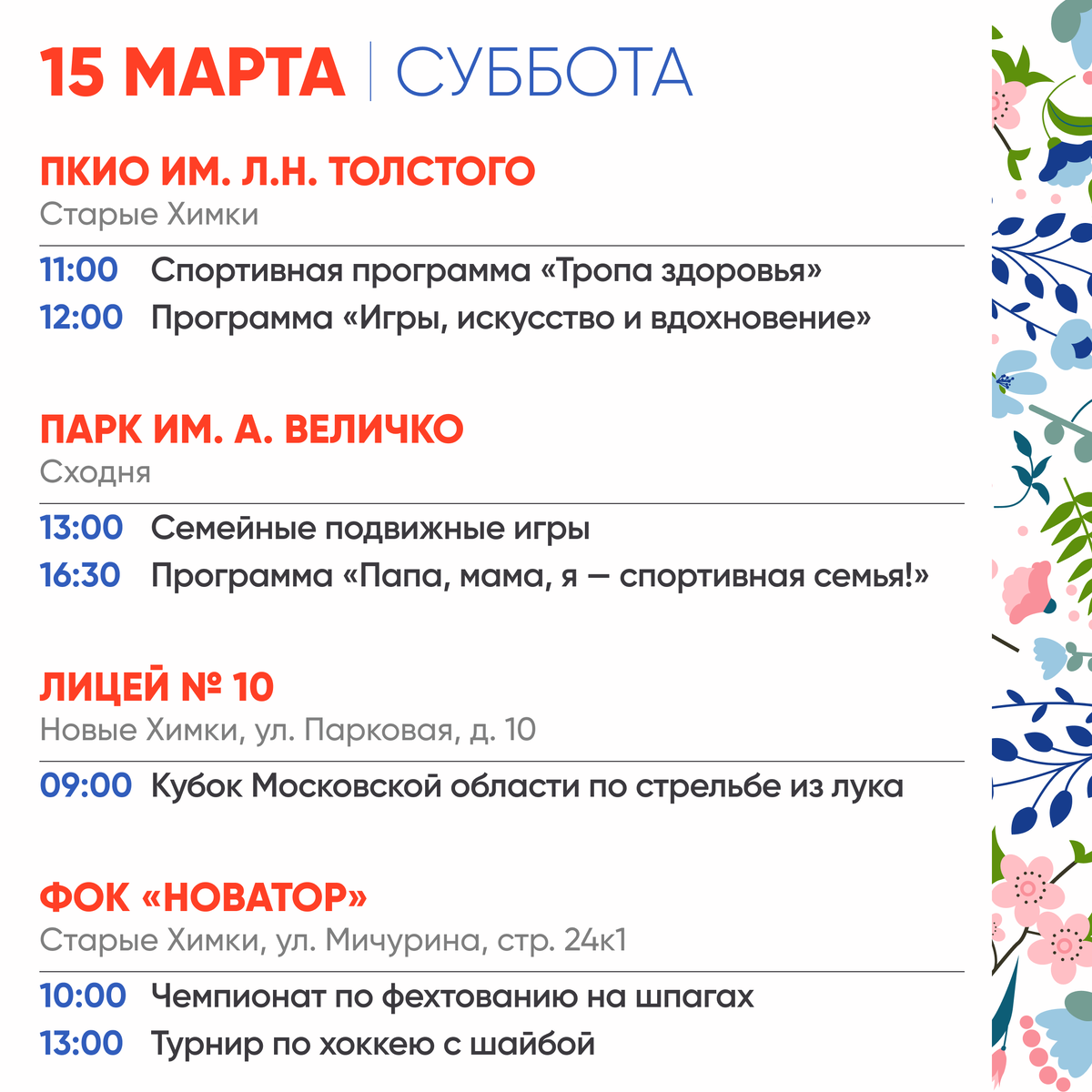 В эти выходные в Химках пройдут культурные и спортивные активности.