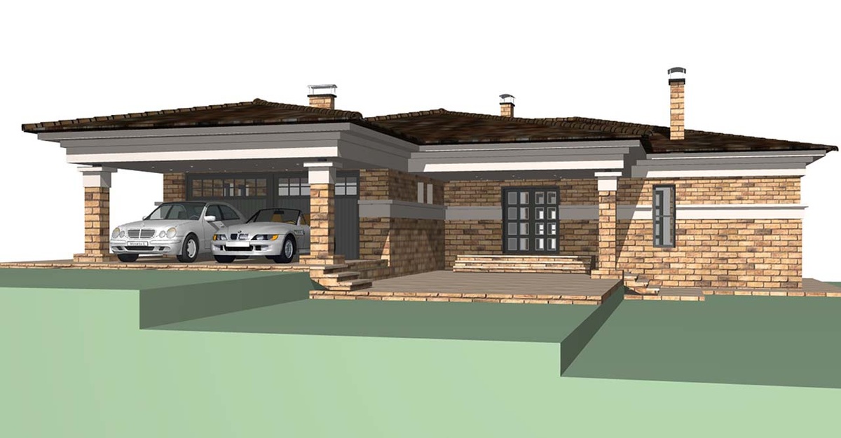 ✅ Проект готовый, условия заказа чертежей - на основном сайте ЛИВАДИЯ - проект одноэтажного дома для участка с рельефом с понижением от дороги, но есть возможность адаптировать его к участку без рельефа. В дом организовано три входа: главный с крыльца - через прихожую, садовый - с садовой террасы в столовую и еще один - в помещение кладовой под спальней. Ливадия - 2-х уровневый дом с перепадом высоты между уровнями в 1.5 метра. На верхнем уровне расположены спальни, банные, подсобные помещения и и гараж. В одной из спален есть балкон-лоджия с видом на понижающийся участок и море. В нижнем уровне в жилой части дома расположены каминная с выходом на террасу и кухня-столовая. На лестничной площадке тремя ступенями выше - дополнительный туалет и хозяйственная комната. Композиционную основу обоих уровней составляет объединяющее все помещения ЛОФТ-пространство, высокий камин и галерея. Помещение уровня с кладовой благодаря естественному уклону участка и выбранному типу фундамента может сдела