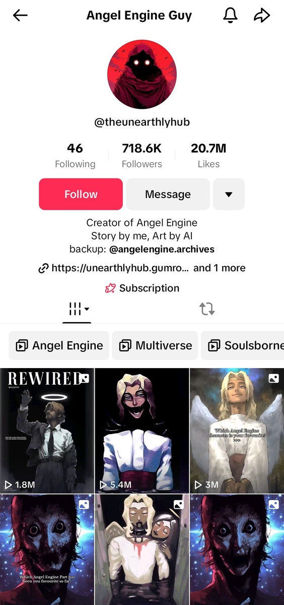 На этот раз я представлю вам не игру (наконец-то :) ), а очень интересный проект. Не так давно, на просторах интернета возник новый феномен - "Angel engine" от аниматора под ником Angel engine guy. Давайте немного изучим этот мульт, его создателя. Angel Engine или Ангельский двигатель - это аналоговый хорор в стиле аниме 80-90 годов, который выпускает в тик-токе пользователь с ником Angel engine guy (@theunearthlyhub). Это довольно жуткий веб-сериал, поэтому особенно впечатлительным смотреть на свой страх и риск, имеются элементы боди-хорора. Судя по странице автора в тиктоке, до выхода сериала, он занимался артами по персонажам из аниме. 11.01.2025 года вышло видео, на котором существо неказистой внешности говорит нам о том, как захватить ангела. Уничтожение окружающего мира и себе подобных приведет к гибели всего, люди обратятся к богу, и тогда посланник небес спустится на помощью людям. А люди смогут его захватить и подключить к машине, которая высосет всю его силу, дав планете нов