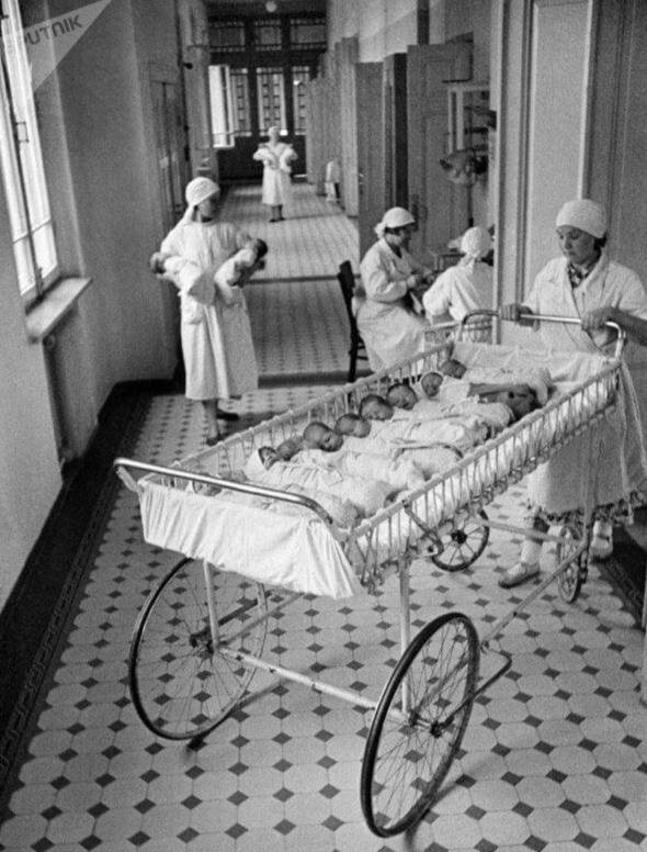 Доставка новорожденных на кормление в роддомах СССР, 1955 год