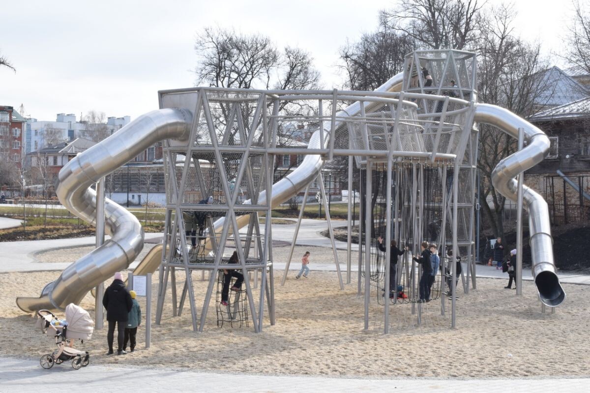 По информации подрядчика детская площадка в Нижнем городском парке готова к эксплуатации. Об этом сообщили на сайте городской администрации. Детская площадка выполнена из нержавеющей стали, основание устлано специальной галькой. По словам авторов публикации, новая площадка безопасна и пригодна для отдыха юных рязанцев, она протестирована и проверена экспертами. Однако в верхней точке комплекс достигает 12-ти метров и включает в себя три горки разной высоты. Детская площадка рассчитана на юных рязанцев всех возрастов, но нахождение без родителей возможно для детей от 7 до 14 лет. Игровой комплекс в Нижнем городском парке является дублером площадки в Парке Горького, но выполнен из российских материалов.