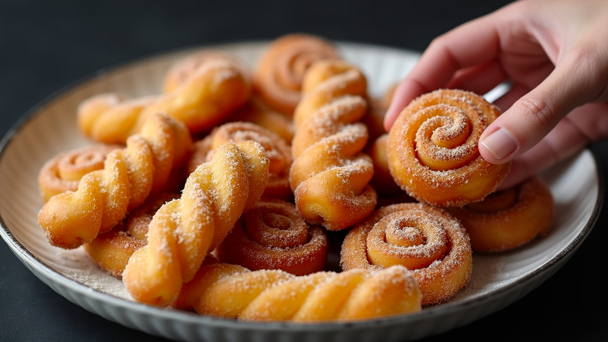 Недавно захотелось удивить семью и приготовить что-то совершенно новое к вечернему чаепитию. В результате получился невероятно вкусный десерт с нежной текстурой и хрустящей сахарной корочкой, который сразу стал фаворитом моих домашних. Теперь делюсь рецептом с вами! В кастрюлю налил воду, добавил сахар, ванильный сахар и щепотку соли. Всё перемешал и добавил сливочное масло, поставил на огонь и довёл до кипения. Как только жидкость закипела, уменьшил огонь до минимума и всыпал муку, сразу же перемешивая. Получилось густое, гладкое тесто. Получившуюся массу переложил в большую миску, распределил по стенкам и дал немного остыть. Отдельно в миске взбил яйцо, затем постепенно вливал его в тесто небольшими порциями, каждый раз тщательно перемешивая, пока не получилось гладкое и однородное тесто. Тесто переложил в кондитерский мешок с фигурной насадкой. Часть теста выдавил в виде полосок, а другую — в виде спиралек. Заготовки отправил в морозилку на 10 минут, чтобы они лучше держали форму. Т