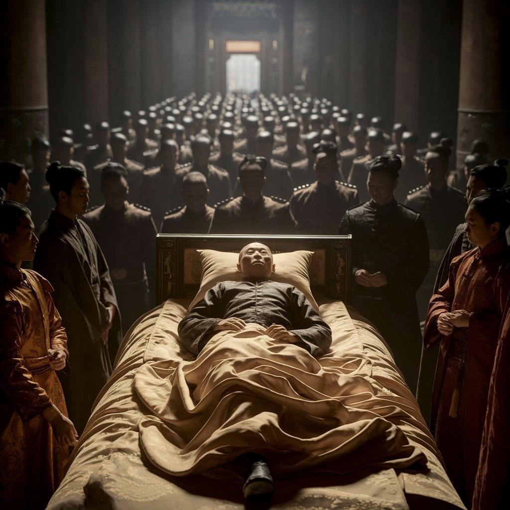 Чжуансян-ван находится при смерти. Про Ин-чжэна расползлись слухи, что он сын Люй Бувэя. Таким образом, придворные кланы пытаются убрать его с дороги, чтобы посадить на трон своих ставленников из семейства правителей. Люй Бувэй решает ввести верные ему войска в императорский дворец, чтобы обеспечить безопасность передачи власти Ин-Чжэну после смерти Чжуансян-вана. Цель канцлера — защитить Ин Чжэна и гарантировать его восхождение на трон после смерти Чжуансян-вана. Это рискованный шаг, так как открытое вмешательство в дела дворца может привести к гражданской войне. Люй Бувэй, будучи опытным политическим деятелем и манипулятором, рассчитывает на поддержку части армии и придворных, лояльных к нему. Однако, успех его плана зависит от множества факторов, включая силу оппозиции и готовность его войск к столкновению с войсками, верными другим кланам. Ситуация крайне напряженная и непредсказуемая. Но канцлер решается, и ведет свои войска к императорскому дворцу. Если интересно, прошу