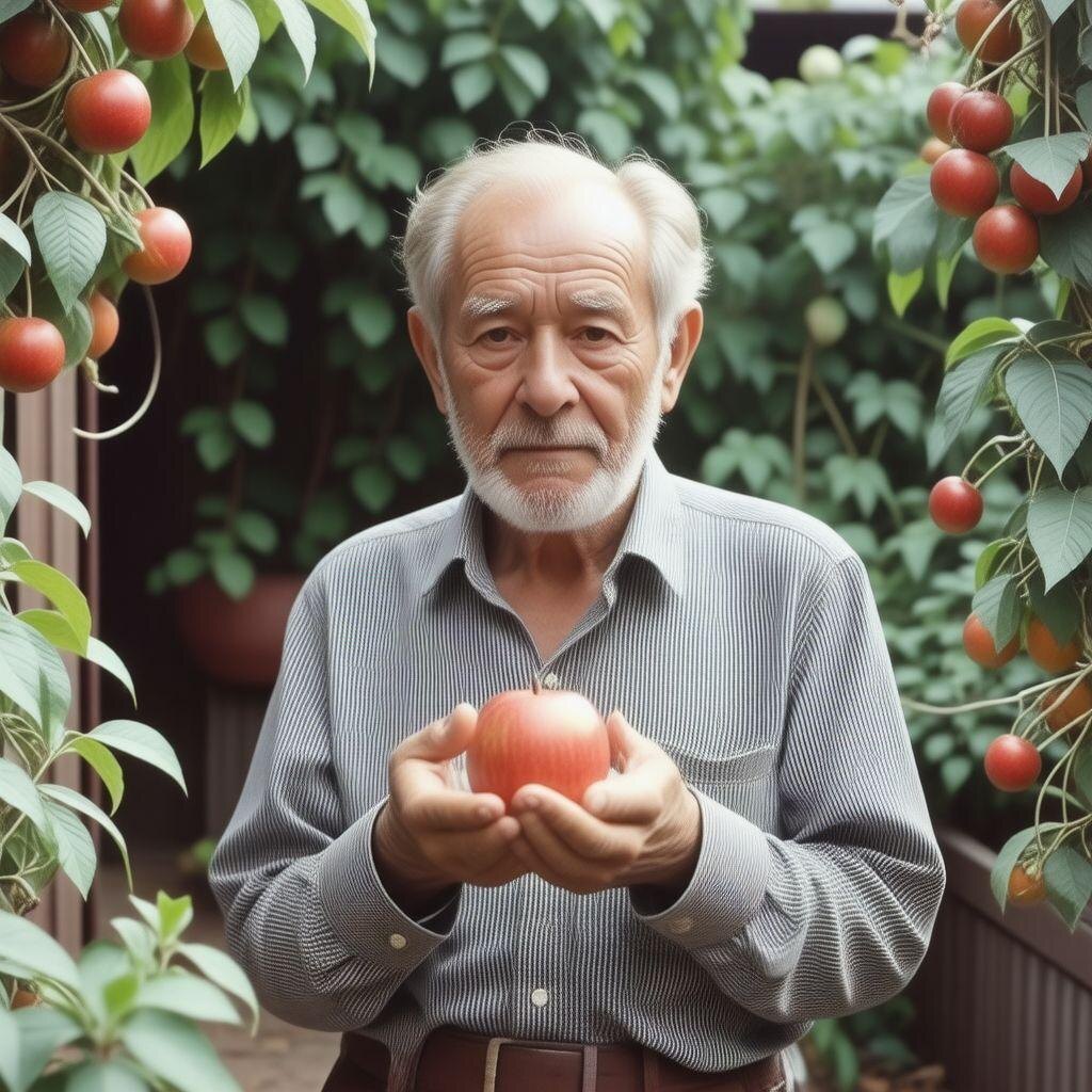 Я стоял на дорожке и по ней же двинулся вперед, осматривая дивный сад. Яблони, груши сливы, вишни, кустики смородины - все такое знакомое и неизвестное одновременно. Интересно, что все они плодоносили, хотя у многих сезон уже закончился. А потом в глубине сада я увидел небольшую черную беседку. В ней сидел дед и еще один старик, весь в черном. У него была длинная седая борода, чуть ли не до колен. Дед грыз розовое яблоко, похожее на те, что и мне когда-то приносил, и ничуть не удивился, увидев меня. «Я же говорил, что внучок» меня когда-нибудь выследит! Он у меня шустрый! - сказал он, разводя руками.