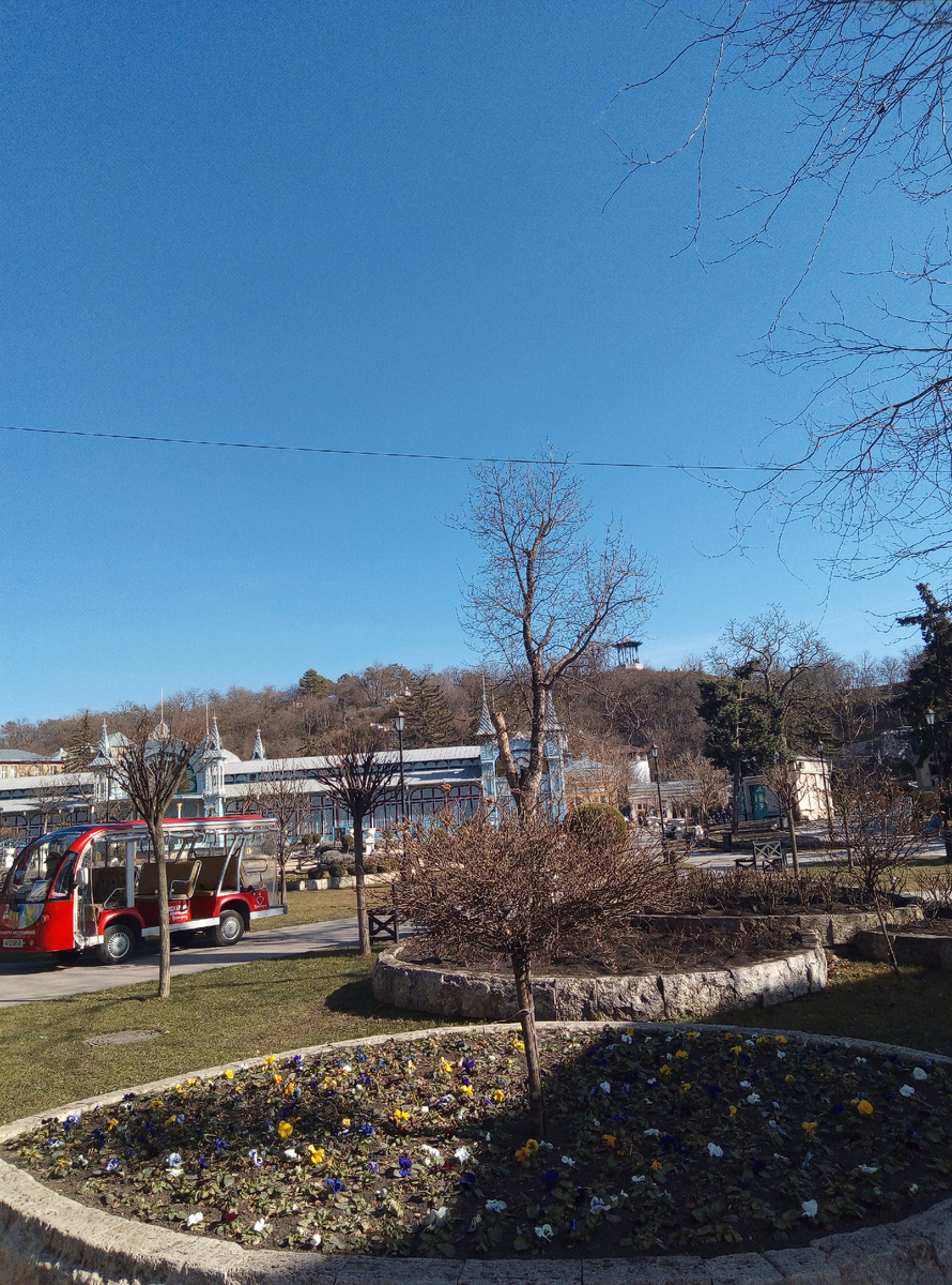 Всех приветствую! На Кавминводах наступила " летняя " весна, даже с нашим непредсказуемым климатом такие перепады температур - уже перебор... После февральской " весны", когда дружно начали цвести первоцветы, февраль вдруг вспомнил, что он всё- таки зимний месяц и решил отыграться снегами и морозами. Сейчас март по- летнему разгорячился, но уже на следующей неделе опять ожидается резкое похолодание. Пользуясь моментом все наслаждаются тёплыми, даже жаркими, деньками. В этом сезоне в парке Цветник с осени высадили Анютины глазки и они благополучно перезимовали. Судя по побегам , на клумбах этой весной будет не так уж много тюльпанов и нарциссов, ну, посмотрим.... У девушки на ножке многострадальной бабочке опять отломали крылышки! ((( Ну вот что за люди!!! И ведь сделал это малолетний вандал специально! По камерам было видно, как это происходило!!!! Пацанёнок , проходя мимо, ногой стал стучать по крылышкам, сделал своё" грязное дело", обернулся по сторонам и убежал.