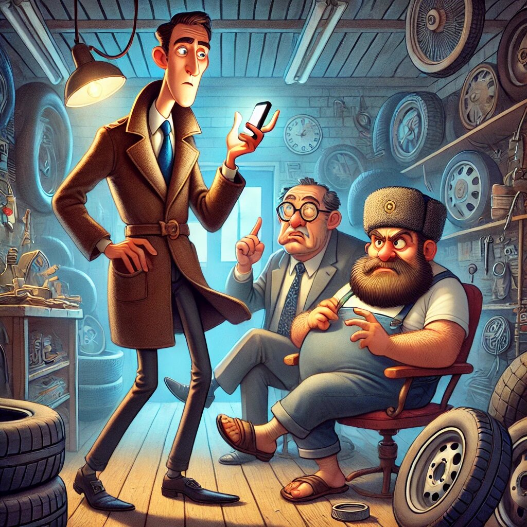 Трое мужчин сидели в тесном запущенном офисе, отделанном выцветшими пластиковыми панелями. Двое устроились за дешёвым столом, заваленным бумагами, каталогами запчастей и парой немытых кружек. Третий, высокий и деловой, нервно расхаживал перед ними, энергично жестикулируя и бросая тревожные взгляды на экран телефона.