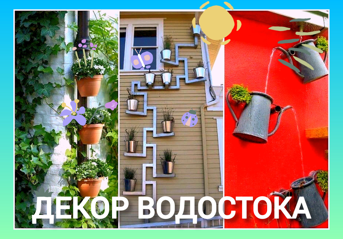 Водосточные трубы – важный элемент защиты кровли, фасада и фундамента от негативного воздействия дождей. Но даже и их можно превратить стильную часть ландшафтного дизайна. Есть множество способов для декора водостока, в этой статье мы соберем решения для вашего участка, где вы желаете сделать ярче свое садовое место. А так же ответим на пару вопросов. Сухой ручей у водосточной трубы. Извилистая неглубокая канава, засыпанная камнями и гладкой речной галькой, которая в дождливую погоду превратится в стремительный ручей и станет прекрасным украшением ландшафта загородного дома. Чудесная композиция из растений и камней. Чудесный мини-сад с растениями и композициями из камней, выстроенными аккурат возле водосточной трубы - прекрасная идея грамотного использования дождевой воды. Стоит отметить, что каменные композиции в этом случае выполняют не только декоративную функцию, но и позволяют дольше удерживать почву влажной. Сухой ручей из черной гальки. Узкий сухой ручей из массивны