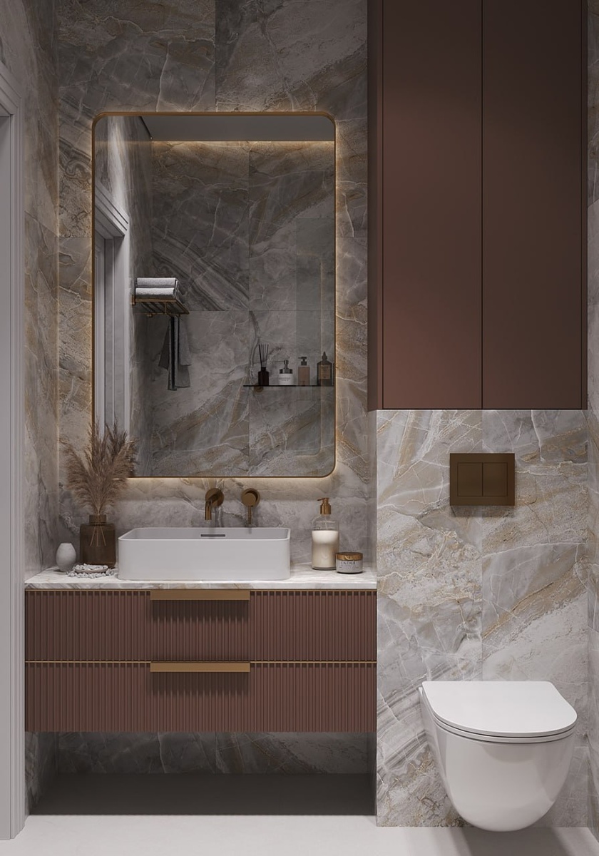 Для вашего вдохновения делюсь визуализациями санузла площадью 3,4м2. Кстати, их выполнила в программе 3dsMax ученица моего курса по подготовке дизайнеров интерьера с нуля Анастасия Барабаш (г. Самара).