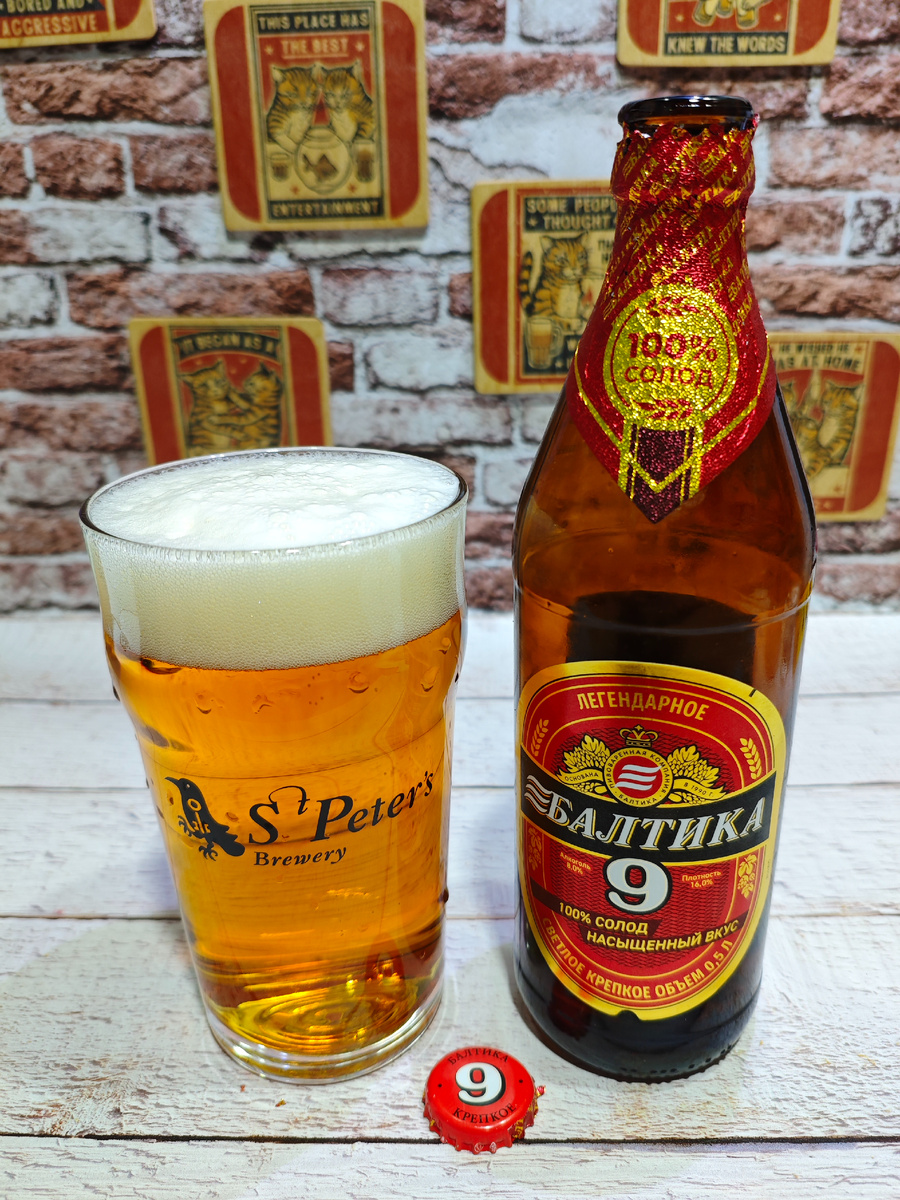 Изготовитель: ООО "Пивоваренная компания "Балтика". Сварено на Тульском пивзаводе. На сайте пивоварни описание следующее: Крепкое пиво, сваренное по оригинальному рецепту с более высокой крепостью, которая достигается исключительно путем естественного брожения. 100% солод в составе обеспечивает мягкий и насыщенный вкус, который оттеняет лёгкая хмелевая горчинка. ********************************************************************************** Плотность: 16%. Состав: вода питьевая очищенная, солод пивоваренный ячменный светлый и карамельный, хмелепродукты. Срок годности: 12 месяцев при температуре хранения от 0℃ до +30℃. С даты розлива моей бутылки прошло чуть менее 5-ти месяцев. ********************************************************************************** Пена присутствует; держится на удивление уверенно и раствориться в первые же секунды не спешит. Аромат солодовый, сладковатый с выраженной фруктовостью. На удивление приятный. Карбонизация умеренная. Вкус солодовый с ощутимой кр